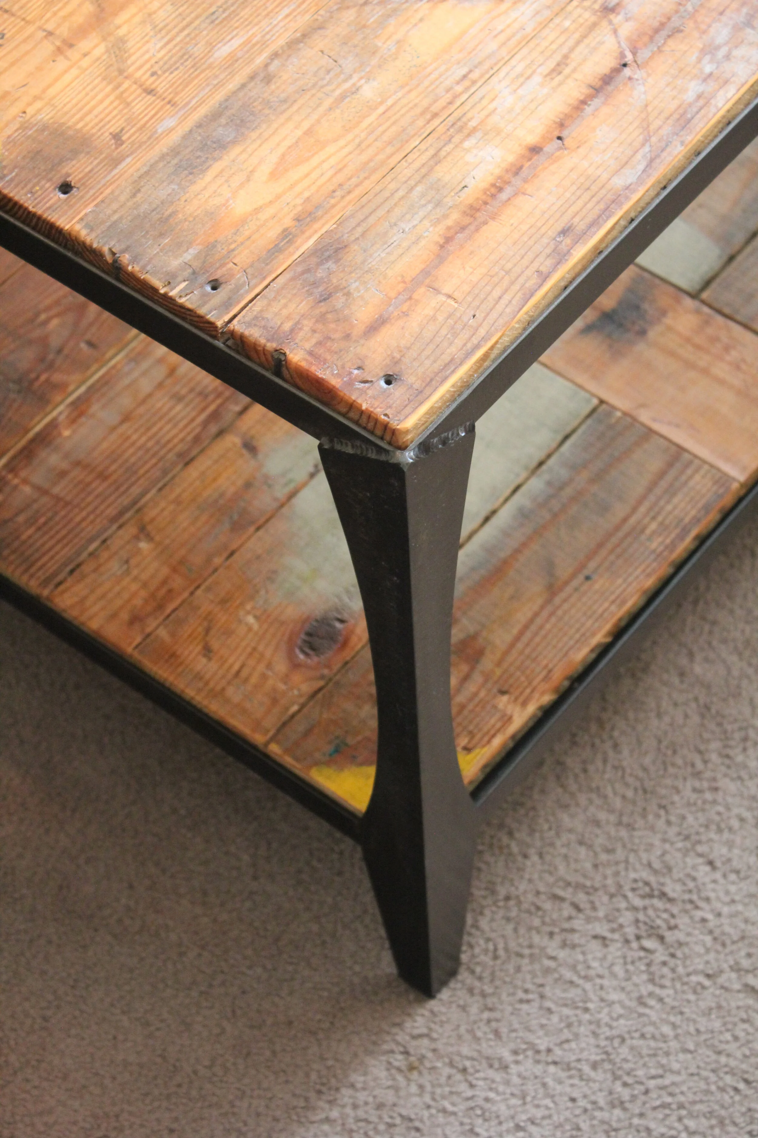 Reclaimed Ammo Crate TableTop: Reclaimed ammo crate (pine wood)Frame/legs: Black patina steelDimensions: 29”(L) x 29”(W) x 20.25”(H)